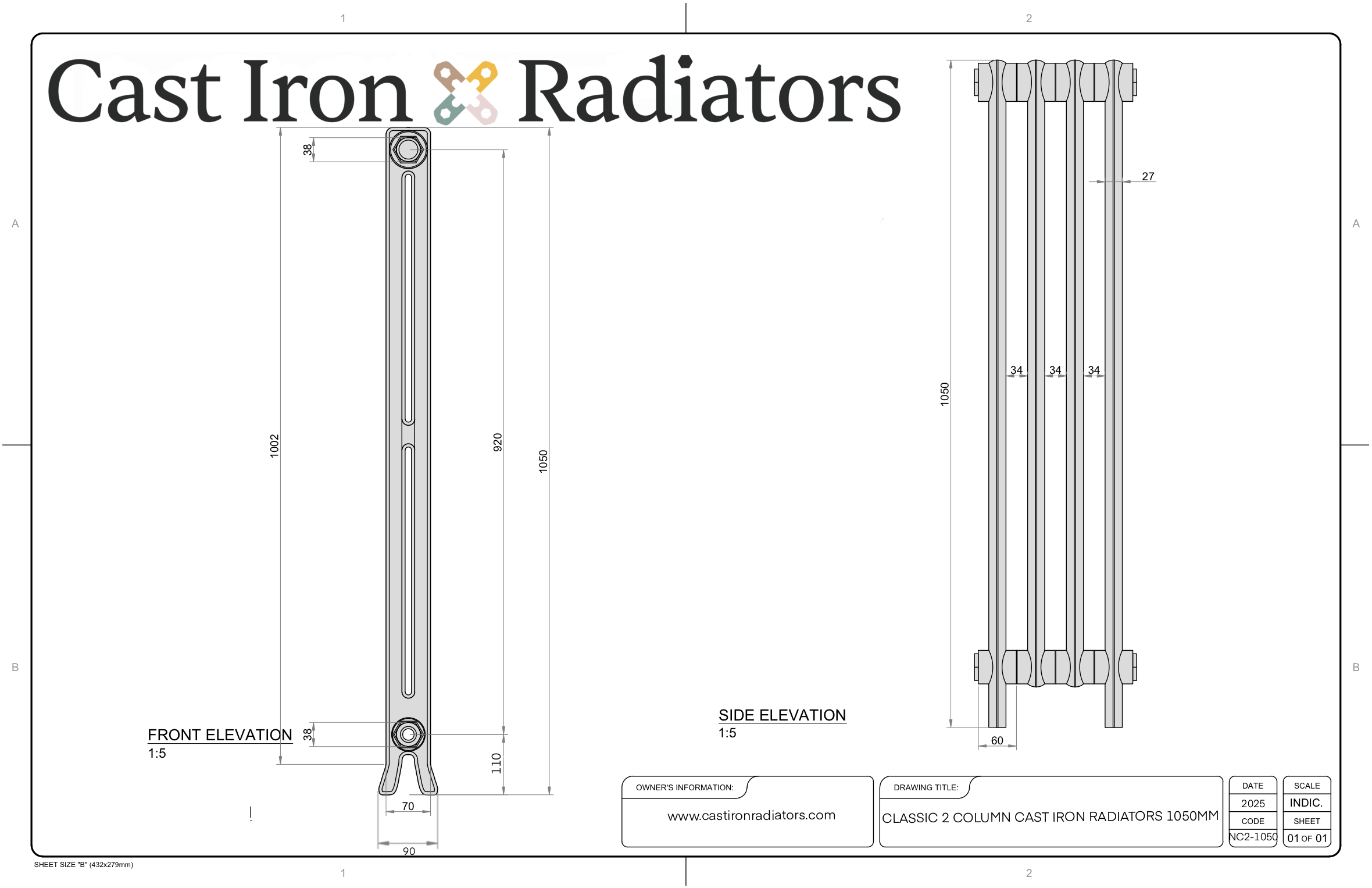 Elegant and efficient, our 1050mm tall 2 Column Classic Cast Iron Radiator offers a refined, space-saving solution with impressive vertical presence. Inspired by early 20th-century design, its slender form and clean lines make it ideal for narrow spaces, hallways, and interiors where subtle heritage style is key.