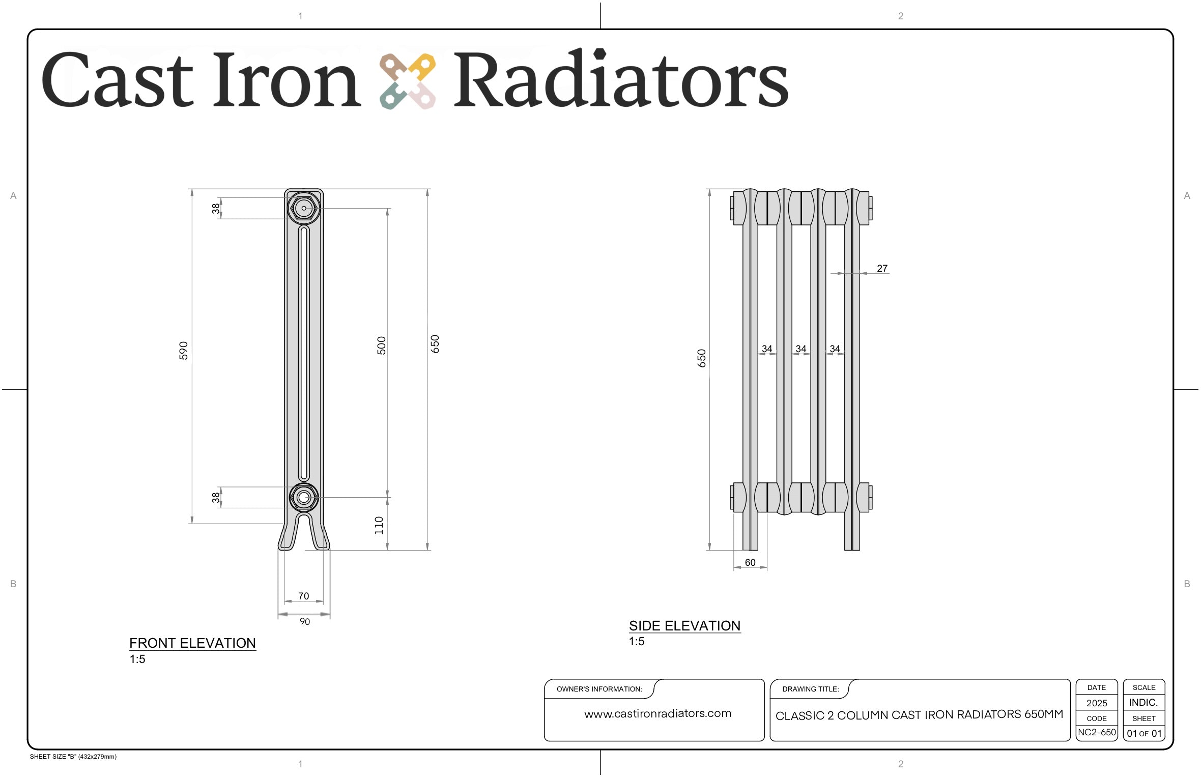 The Oversized 650mm 2 Column Classic Cast Iron Radiator combines a sleek, space-saving profile with extended length—perfect for longer walls, wide under-window spaces, or rooms that need understated style and efficient heat output. Its slim, elegant silhouette channels early 20th-century design, offering classic character for both traditional and modern interiors.